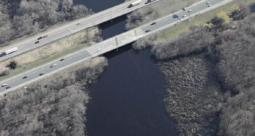 The stretch of the Concord River flowing under Interstate 495 is a